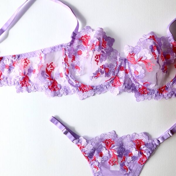 ست شورت و سوتین توری فنردار ژِینا گلدوزی کد 2006